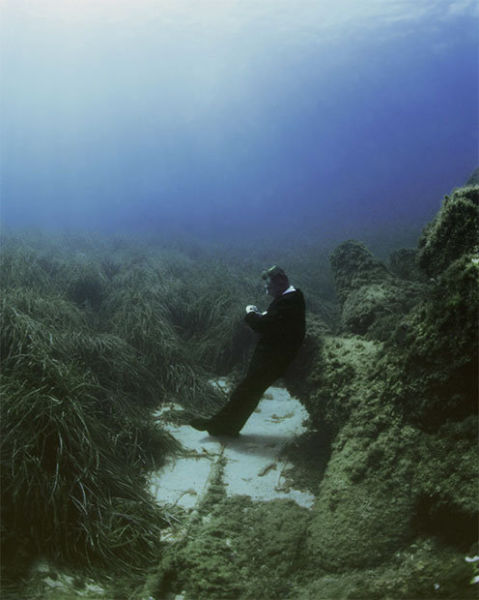 Philippe Ramette is an artist who uses two major media to express himself: with installation and sculpture, creating impossibly surreal objects and situations often using nonsense humor, and with the turning of his own body clothed in a black suit into a surreal situation, just one component of a landscape so extravagant and visually stunning.